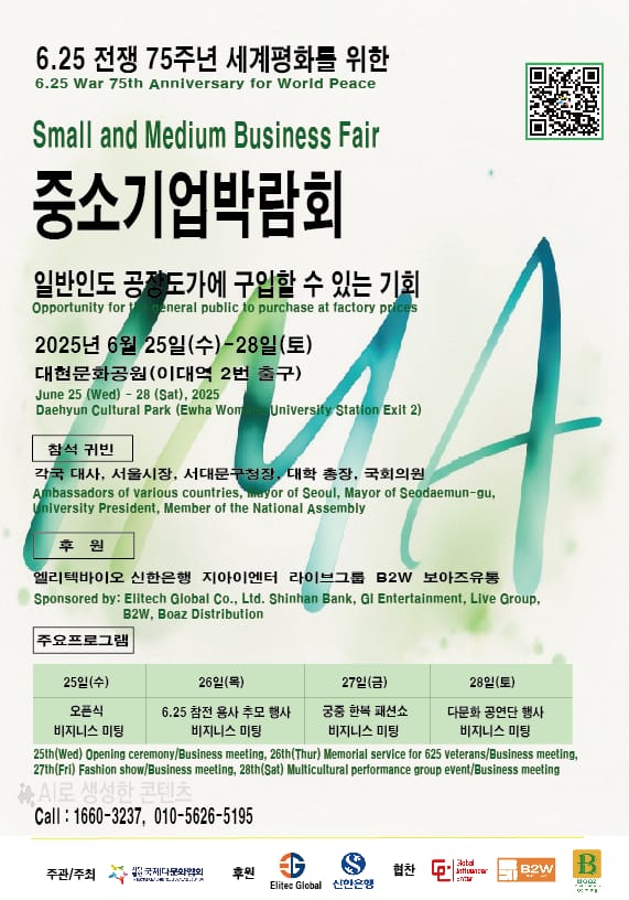 Eletech Global (Pvt) Ltd is proud to be a key sponsor of the upcoming Small and Medium Business Fair to be held from June 25th (Wednesday) to 28th (Saturday), 2025, at the Daehyun Cultural Park (Exit 2, Ewha Womans University Station), Seoul, South Korea.
